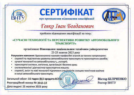 Викладачі кафедри Автомобілів пройшли підвищення кваліфікації у Вінницькому національному технічному університеті у жовтні 2023 року